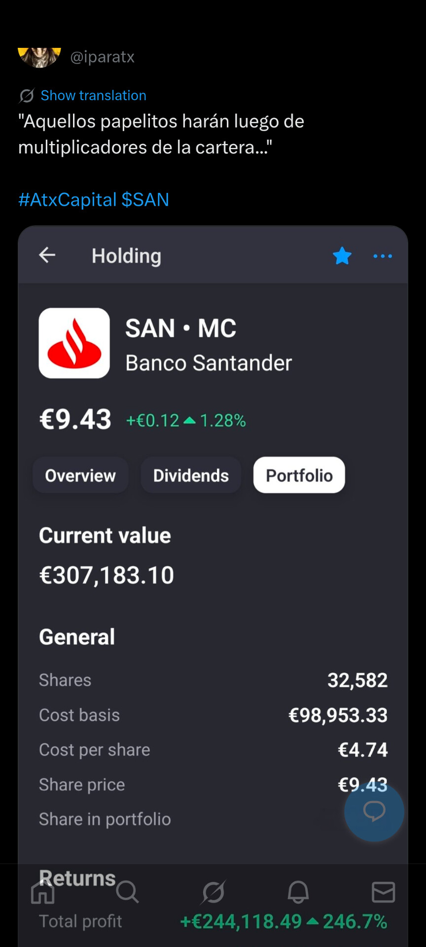 A mi me pillo con los 5 hispanos magníficos de aquellos tiempos y un 60% de perdidas, ¿que me sujeto?, además de no querer confirmar las perdidas al vender, los dividendos, era al menos una gozada cobrar un mes el divi del SAN, al siguiente el del BBVA y de vez en cuando los de los otros, supongo que seria TEF, REP y alguna eléctrica.