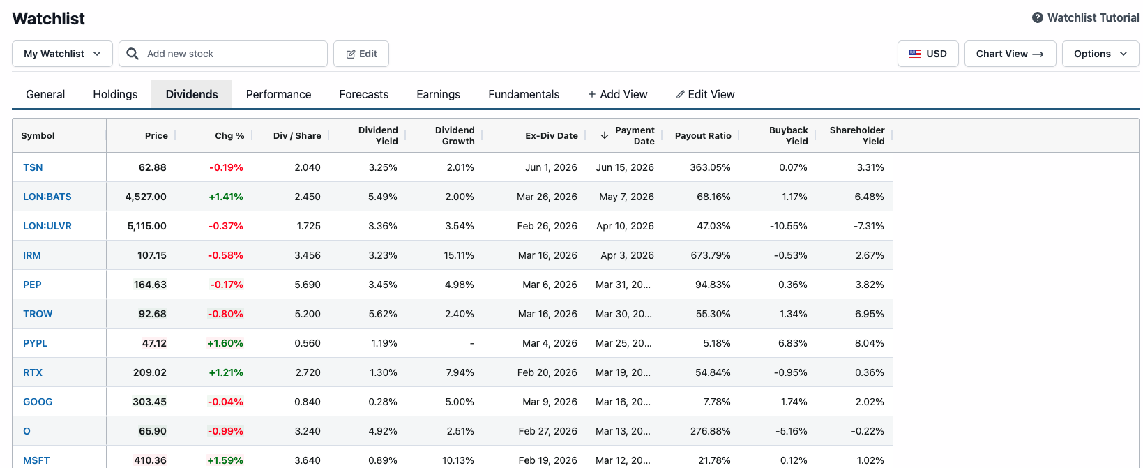De entrada me sirve para ver las fechas de los Ex-days, forecast (evaluaciones) y Pay day. , earning calendars, etc…