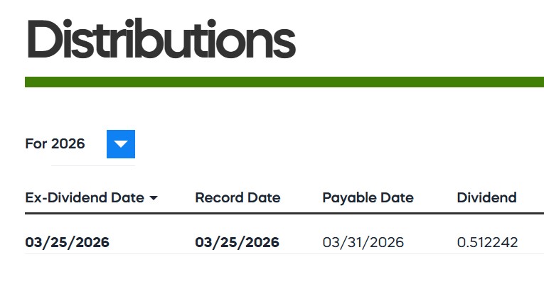 ProShares anuncia hoy que su ETF S&P 500® Dividend Aristocrats, $NOBL, pagará su próximo dividendo trimestral, de 0,512242$ /acc., el día 31 de marzo de 2026.