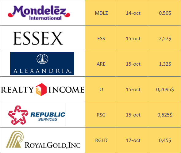 Realty Income, $O, que hoy paga dividendo, anunció ayer que pagará su próximo dividendo mensual, de 0,2695$/acc., el día 14 de noviembre de 2025.