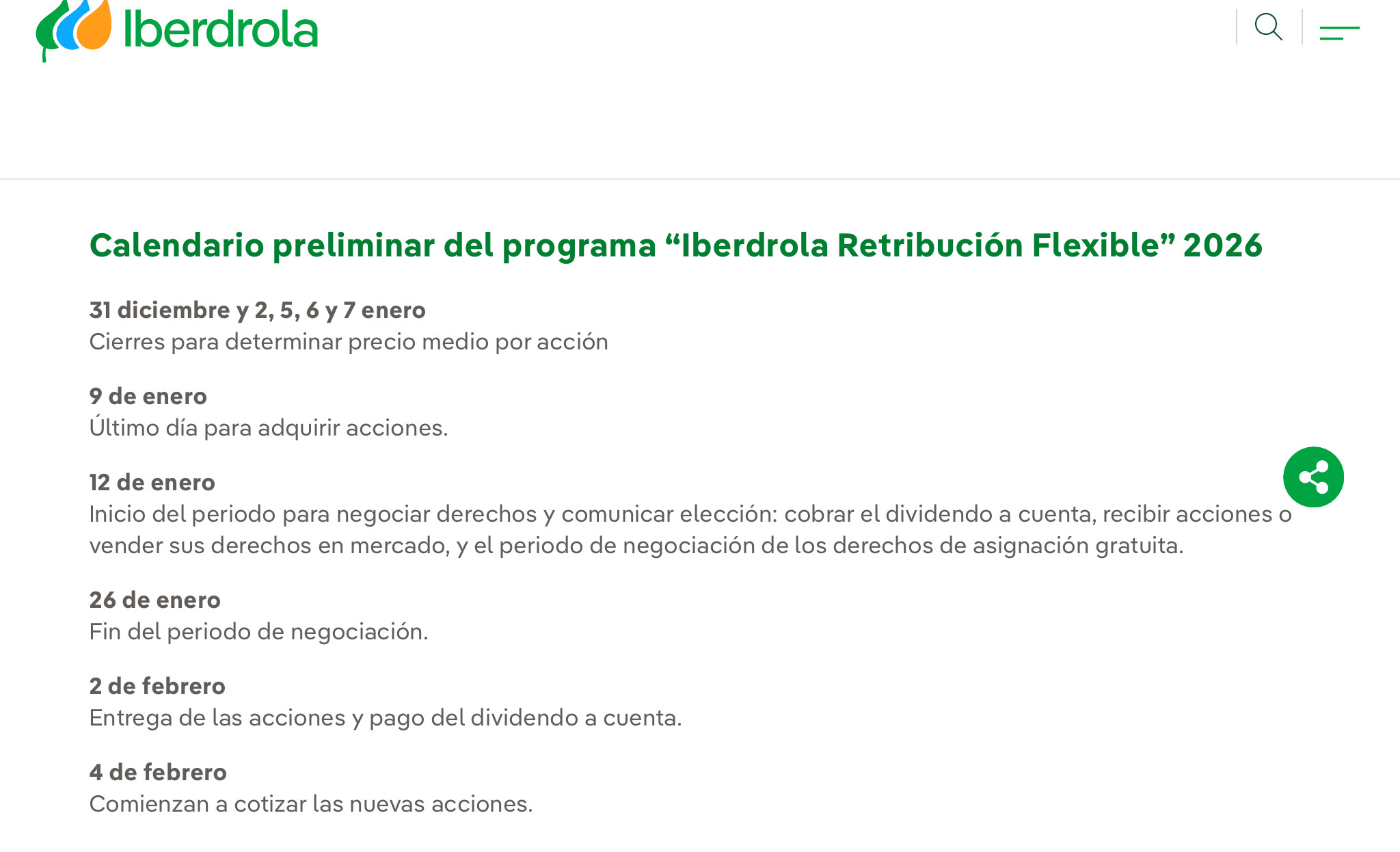 derecho a percibir el dividendo (ex-date). - 13 de enero de 2026. Fecha efectiva de liquidación de las operaciones realizadas el 9 de