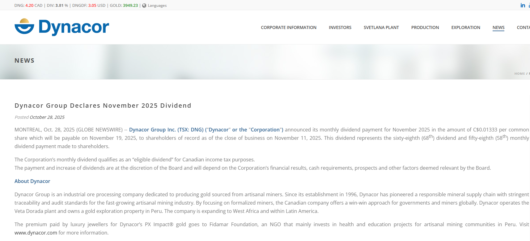 Royal Gold, $RGLD, anuncia hoy que pagará su próximo dividendo trimestral el día 16 de enero de 2026, y que será de 0,475$/acc., lo que supone un incremento del 5,56% respecto a los 0,45$ que ha abonado en sus pagos trimestrales de 2025.