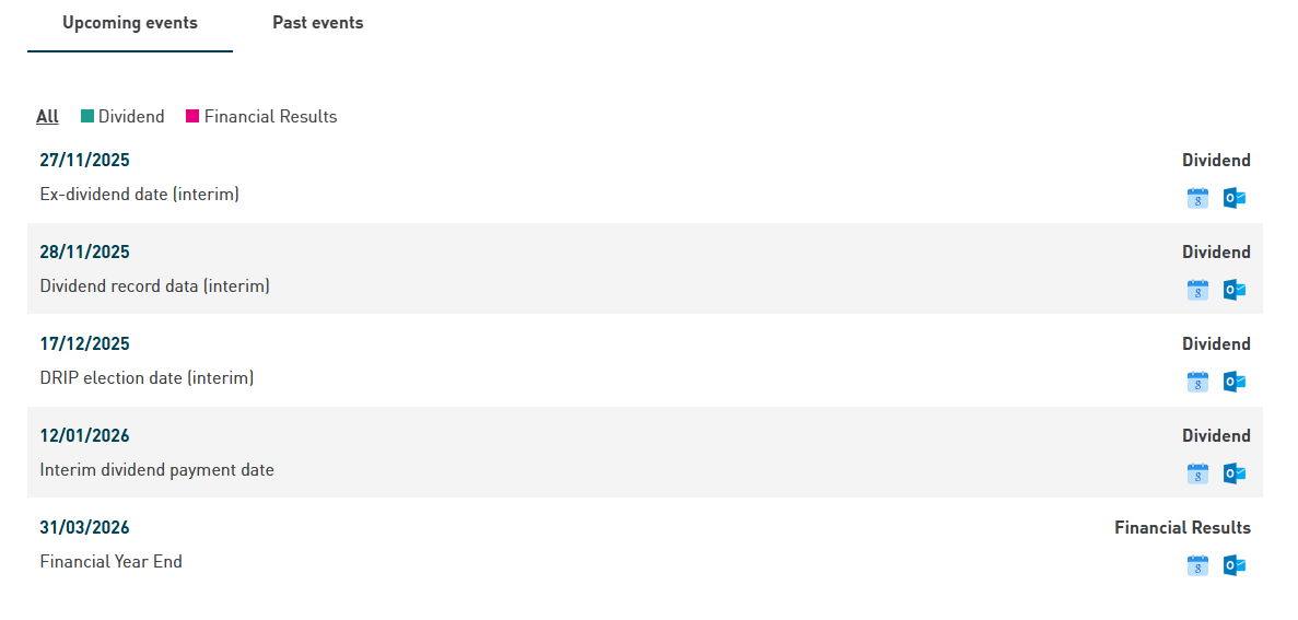 Dividends The Board has declared an interim ordinary dividend of 50.40p per share (2024/25: 48.68p per share), which will be paid on 12 January 2026 to shareholders on the register at 28 November 2025.