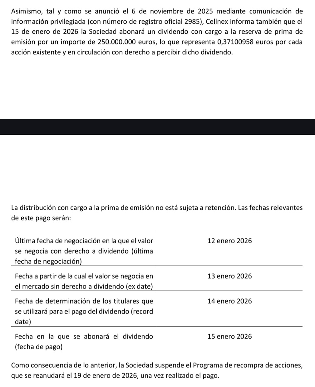 fuente: Special Dividend and Share Consolidation