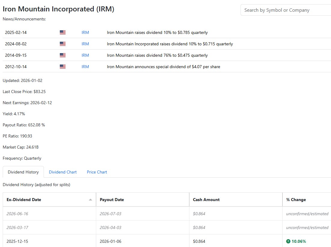 Iron Mountain paga el martes 0,864$/acc.