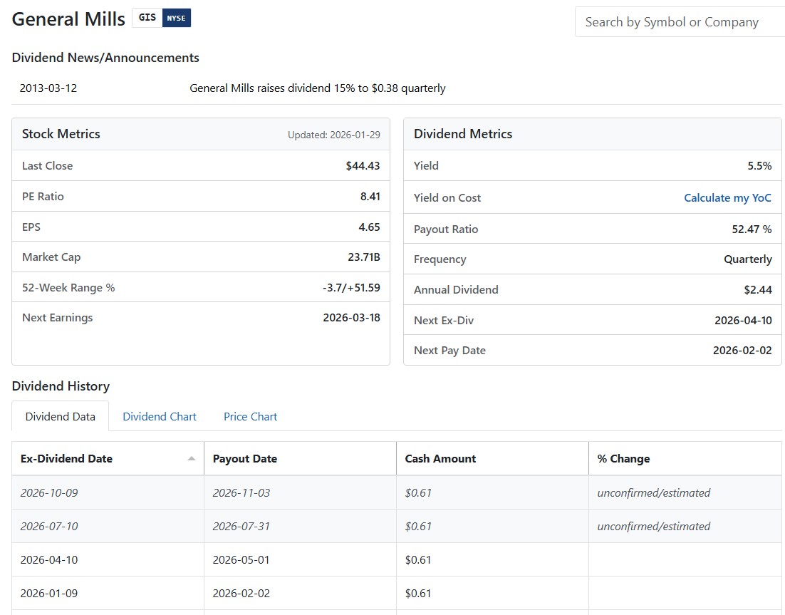 Franco Nevada, $FNV, anuncia hoy que pagará su próximo dividendo trimestral el día 26 de marzo de 2026, y que será de 0,44$/acc., lo que supone un incremento del 15,79% respecto a los 0,38$ que abonó en sus pagos trimestrales de 2025.