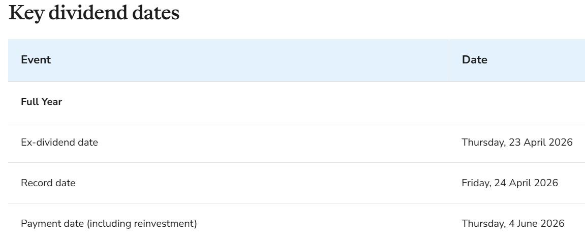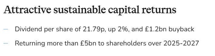 Legal & General, $LGEN.L, anunció anteayer que pagará su dividendo final del ejercicio 2025 el día 4 de junio de 2026, y que será de 15,67p. que sumados a los 6,12p que pagó como dividendo a cuenta el pasado 26 de septiembre, hacen un total de 21,79p, lo que supone un incremento del 2,01% respecto a los 21,36p que pagó en total con cargo a los resultados de 2024.