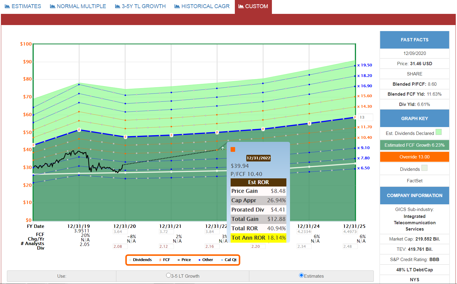 La media de los últimos 5 años ha sido, de 13x P/FCF y los retornos los pongo con una recuperación a 10.40 y 11.70x P/FCF