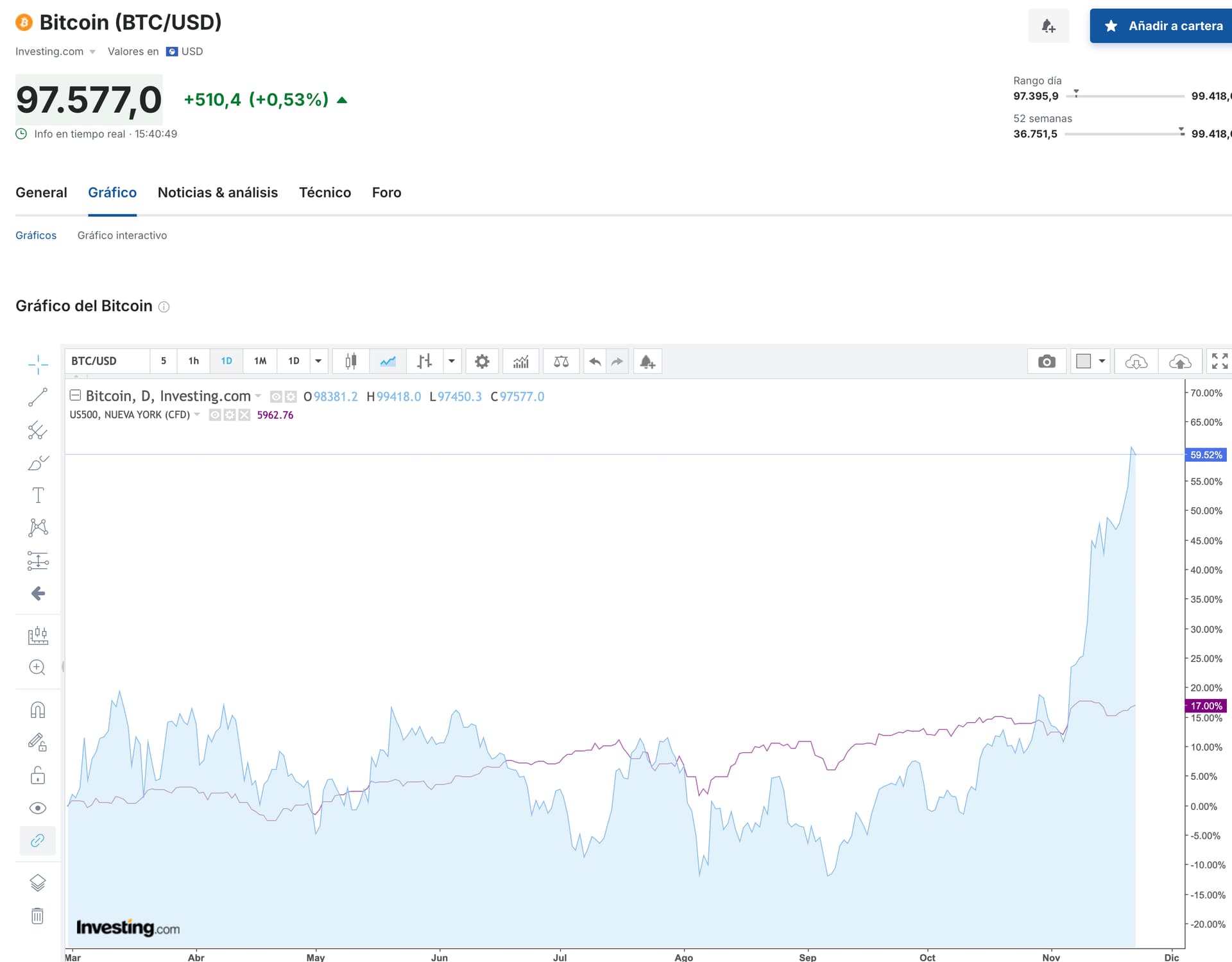 Parece que la correlación BTC,SP500 se ha roto. Creo que son buena noticias para la comunidad BTC. Ha habido días en los que he dudado de que fuera un valor refugio, parecía más bien a remolque del SP500.