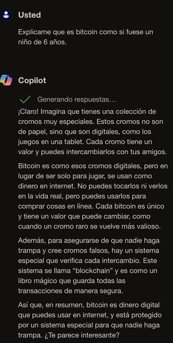 Bitcoin es como un dinero mágico que vive en internet. No es como las monedas de tu hucha, pero sirve para comprar cosas o guardarlo. Es especial porque no pertenece a ningún país ni banco; las personas lo cuidan juntas.