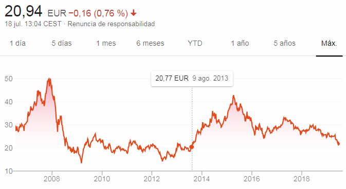 En Abril y a 25€. Ahora ronda los 21,5€ y la situacion sigue parecida.