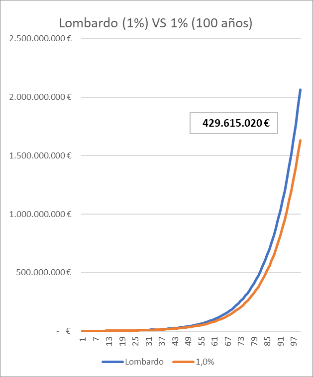 PERO ES QUE EN 100 AÑOS, PARTIENDO DE SOLO 1M€ LA DIFERENCIA SON 429 M€
