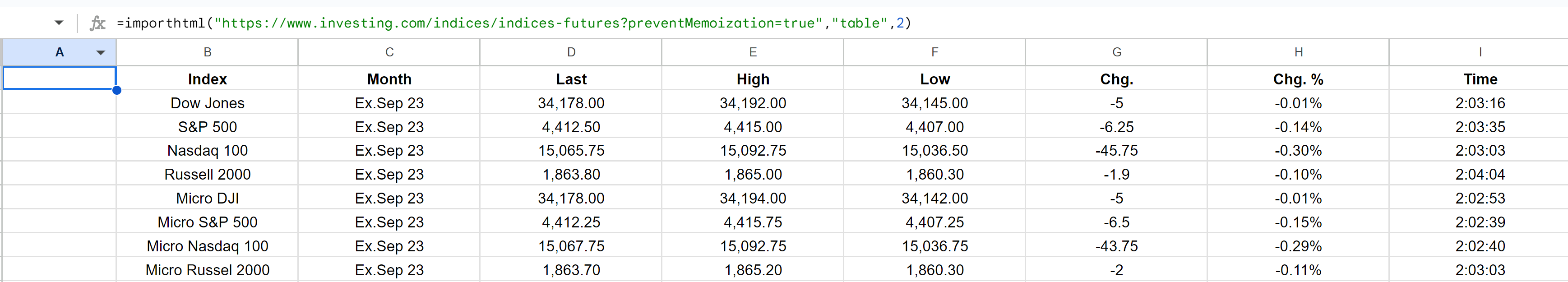 Con esto cada vez que des a ejecutar se te refrescará a tiempo real en la celda A1