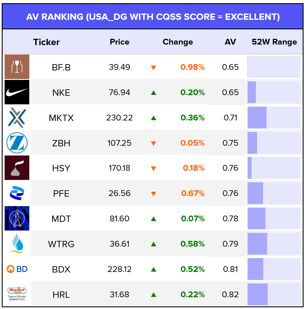 A ratio below 1.0 means that the stock is undervalued. A ratio of 0.80 for example would suggest that the stock is selling at a 20% discount to its fair price.