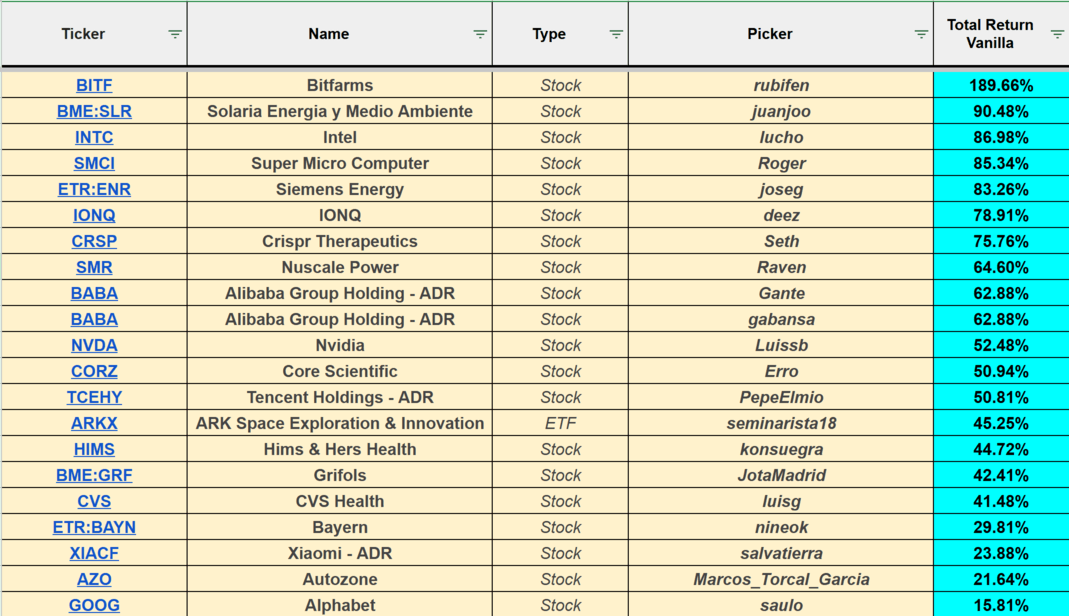 ¿Tenemos ya ganador del concurso? ¿Es @Rubifen el Pogacar del stock picking?