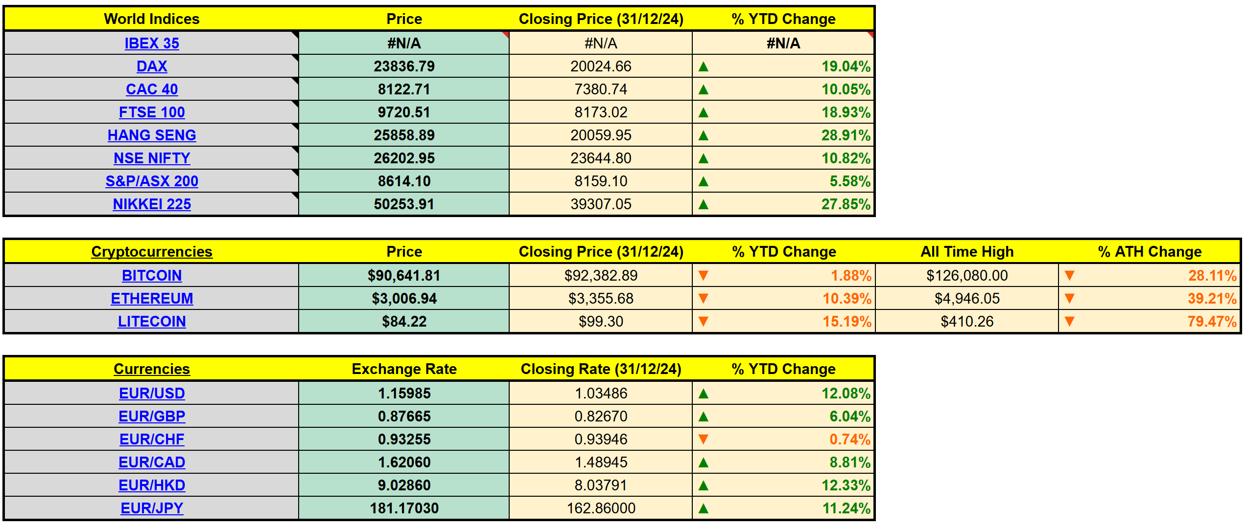 Índices, Criptomonedas y Divisas a 28/11/2025