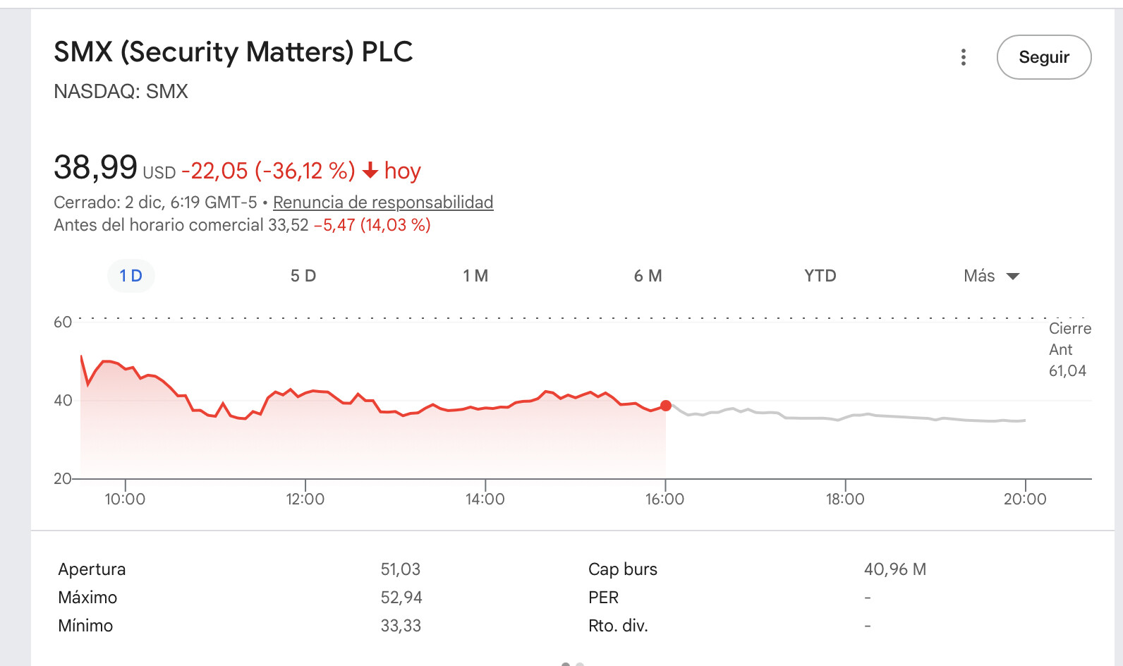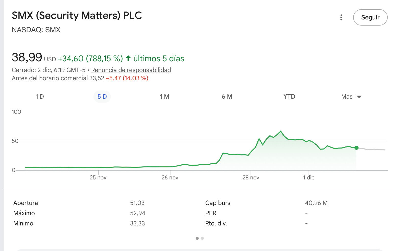 Yo hice parecido. Le pregunté a ChatGPT qué empresa había caído más este año. Me dijo que SMX, comprobé que seguía cotizando y pa’lante.
