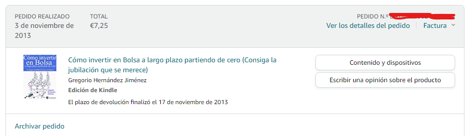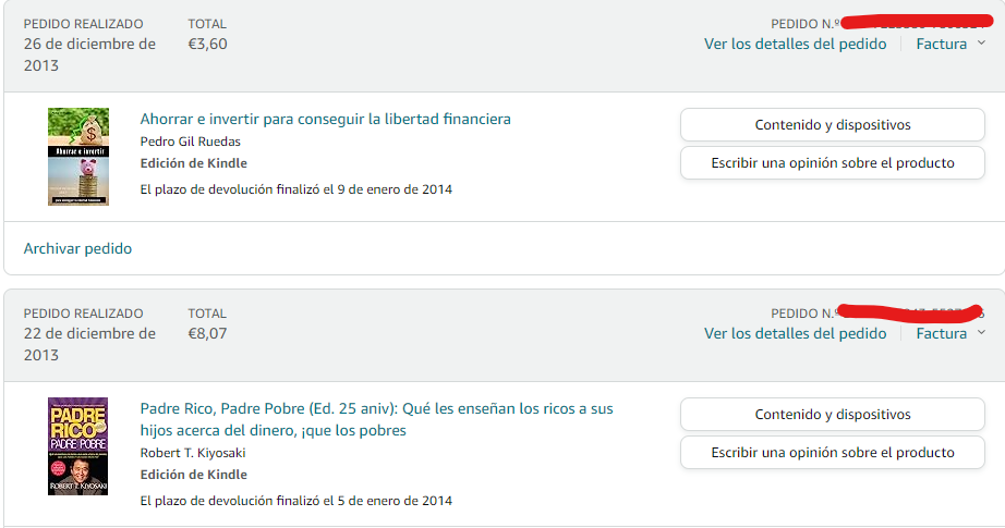 Muy buenos dias a todos, estaba hoy trasteando para comprar unos cascos inalámbricos para hacer deporte en Amazon cuando encontré mis primeros libro de inversión, comprados allá por noviembre del 2013. Casi 10 años!!! Lo digo muchas veces pero cuando he visto los pedidos en Amazon Kindle… ahi si que veo lo mucho que ha cambiado mi modo de pensar en este periodo de mi vida.