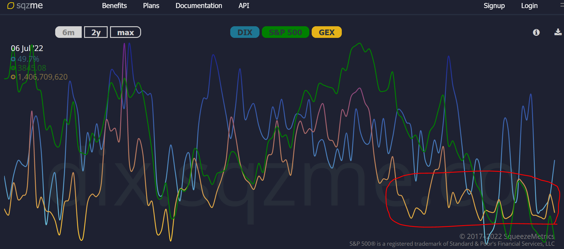Otra cosa q miro es el dix y el GEX, estas últimas semanas el gex muy negativo, lo q marca una aceleración de la tendencia (que ahora es a la baja).