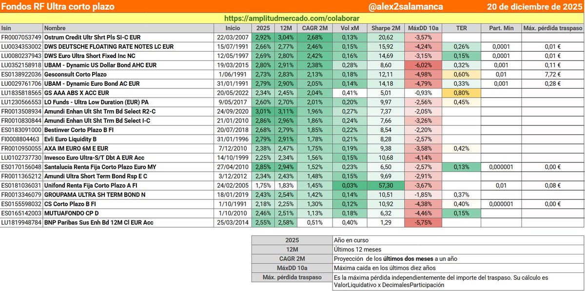 Finalmente no me lo pensé mucho y desde que os plantee el tema dividí el fondo de emergencia en 4. 2/4 lo dejé en el fondo monetario de Axa, 1/4 al DWS ultra corto plazo, y el 1/4 restante en gamma global (si, en la única clase que ofrece Myinvestor).