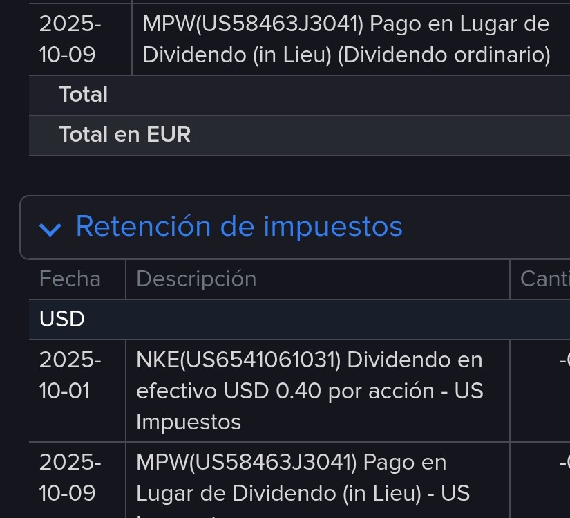 Yo sin embargo tengo prestadas acciones americanas y he recibido el dividendo correcto y apuntado como cualquier dividendo en el estado de cuenta con su retención habitual. Vamos, como siempre.