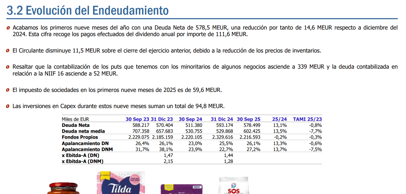 Quiero recordar que Ebro Foods ha sido muy activa en el pasado en la compra y venta de empresas relacionadas con su negocio. En este sentido no tengo especial intranquilidad.