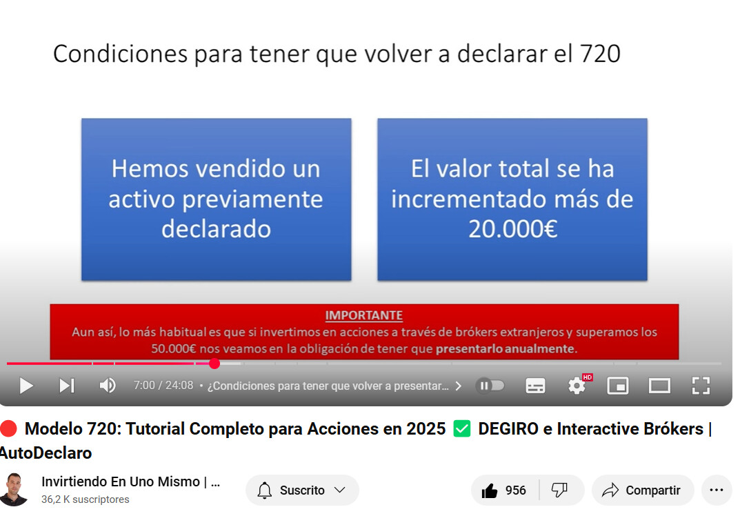 Solo si se ha vendido una posición declarada en el modelo 720 en años anteriores o el valor de tu cartera ha aumentado en 20.000€ o más.
