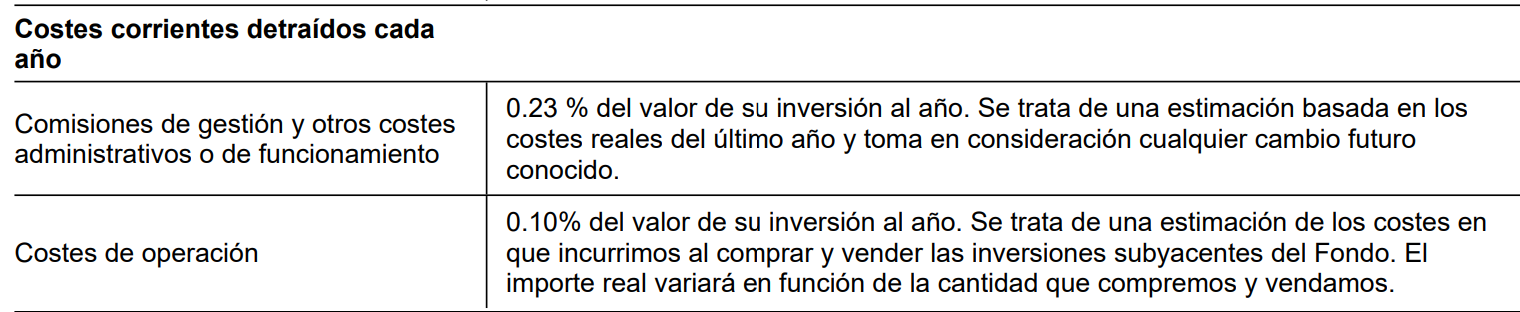 Un poquito más (0,33%). Hay que tener en cuenta tanto el OCF/TER como los costes de operación.
