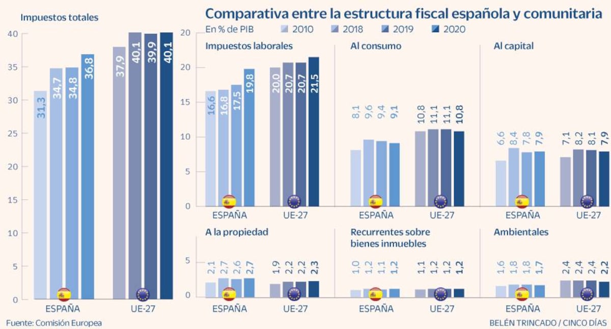 Los españoles pagan un 39% de su coste laboral en impuestos: cinco puntos más de la media de la OCDE