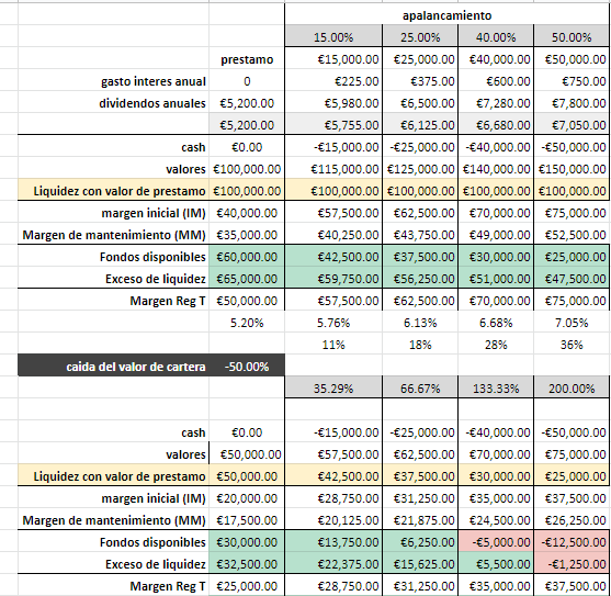 Gracias por la tabla aportada; esperaba mayor riesgo en esos niveles de apalancamiento, pero claro, estaba hablando de casos extremos como marzo del 2020, pero veo que ni así. Quizá en un 1929…