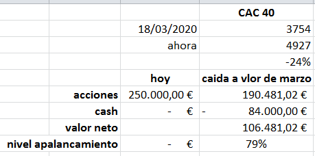 suponiendo una cartera de 250.000€ en acciones y que el CAC40 vuelve a niveles de Marzo: