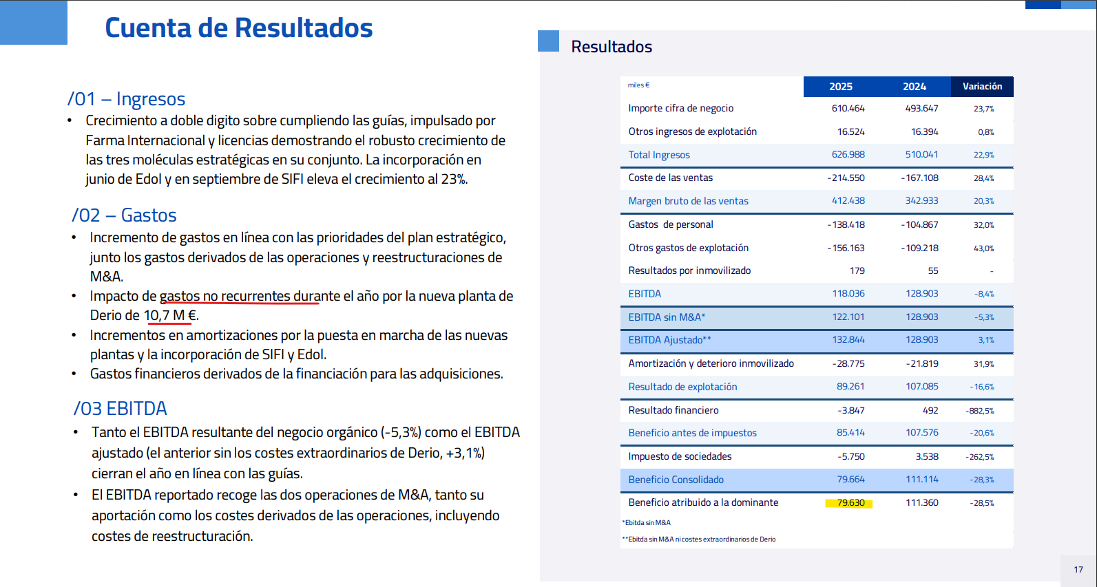 EBITDA +28% / +31% → Desde 118M pasaríamos a 151M-155M