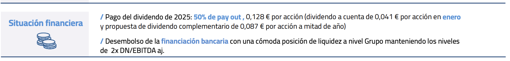 Buenas perspectivas de EBITDA para 2026, pero a mí lo que me gustaría saber es cuánto afectará al beneficio neto la política de adquisiciones del nuevo plan estratégico y si el dividendo previo es recuperable a corto-medio plazo.