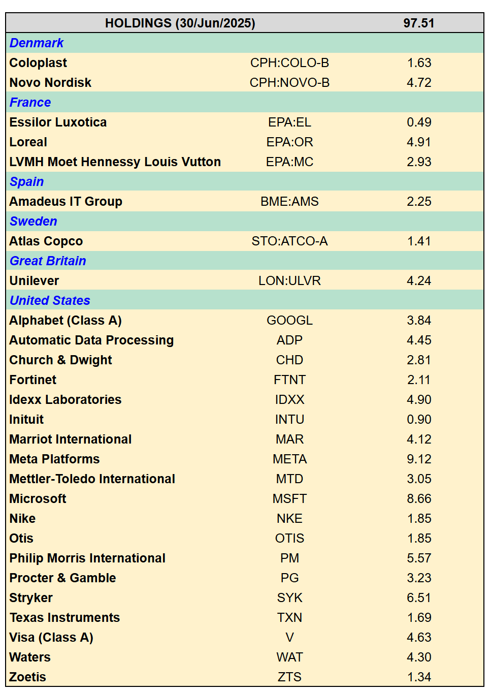 We initiated a position in Wolters Kluwer (AMS:WKL) and received a holding in Magnum Ice Cream (LON:MICC) which was spun out from Unilever.