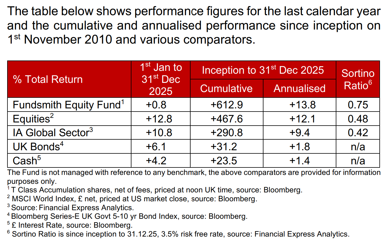En su carta anual de enero de 2026, Terry Smith ofrece una lectura particularmente estructurada del panorama bursátil y, indirectamente, esboza su visión del mundo. Más que un ejercicio para explicar el bajo rendimiento de Fundsmith en 2025 (una rentabilidad del 0,8 % frente al 12,8 % del mercado bursátil en libras esterlinas), el artículo es una reflexión más profunda sobre los desequilibrios del mercado, los excesos asociados a la indexación y las implicaciones a largo plazo para los inversores activos centrados en los fundamentales.