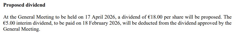 For 2022, the group will propose a dividend of EUR13 a share, rising from the EUR8 as share paid out last year.