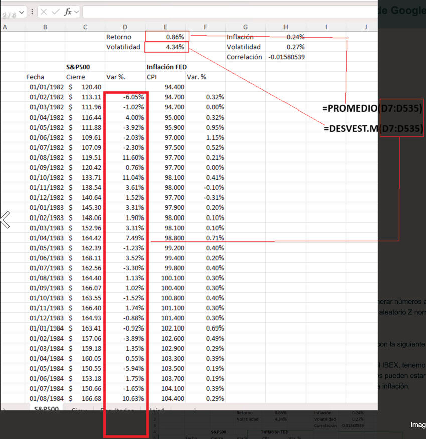 Con este número aleatorio Z, calculamos el retorno mensual del SP500 con la siguiente fórmula:
