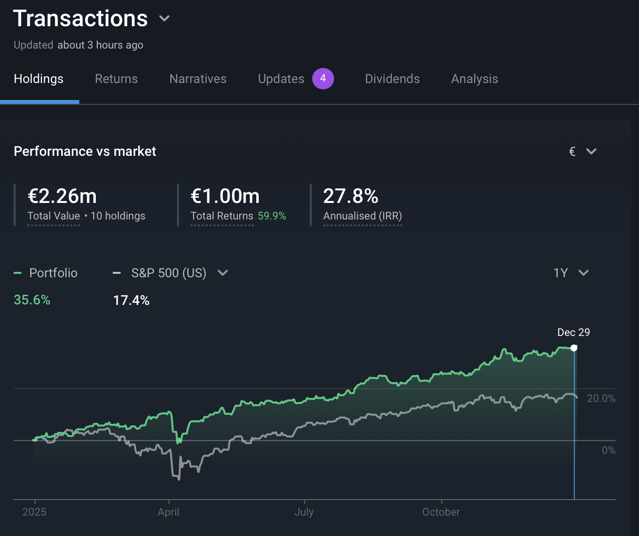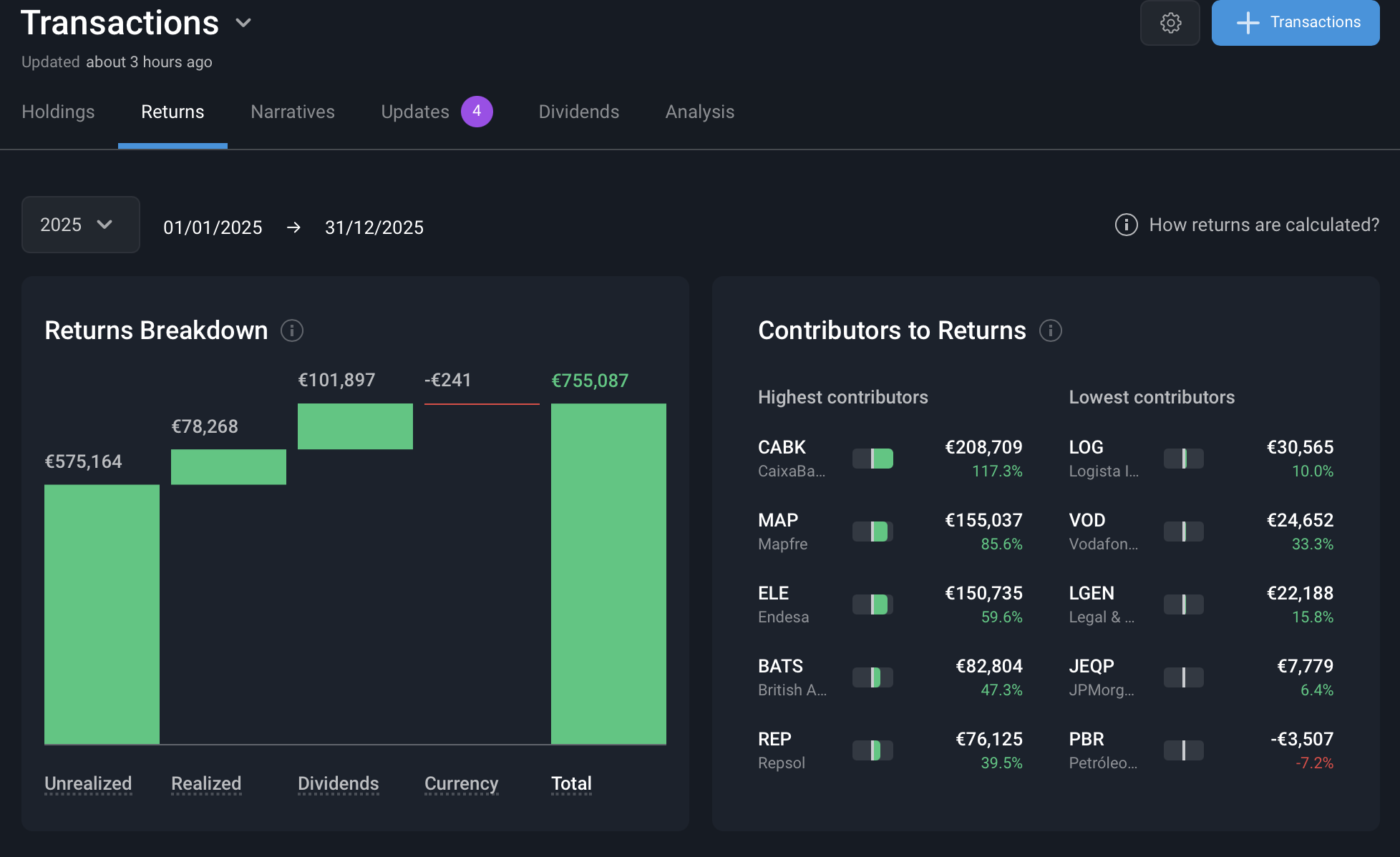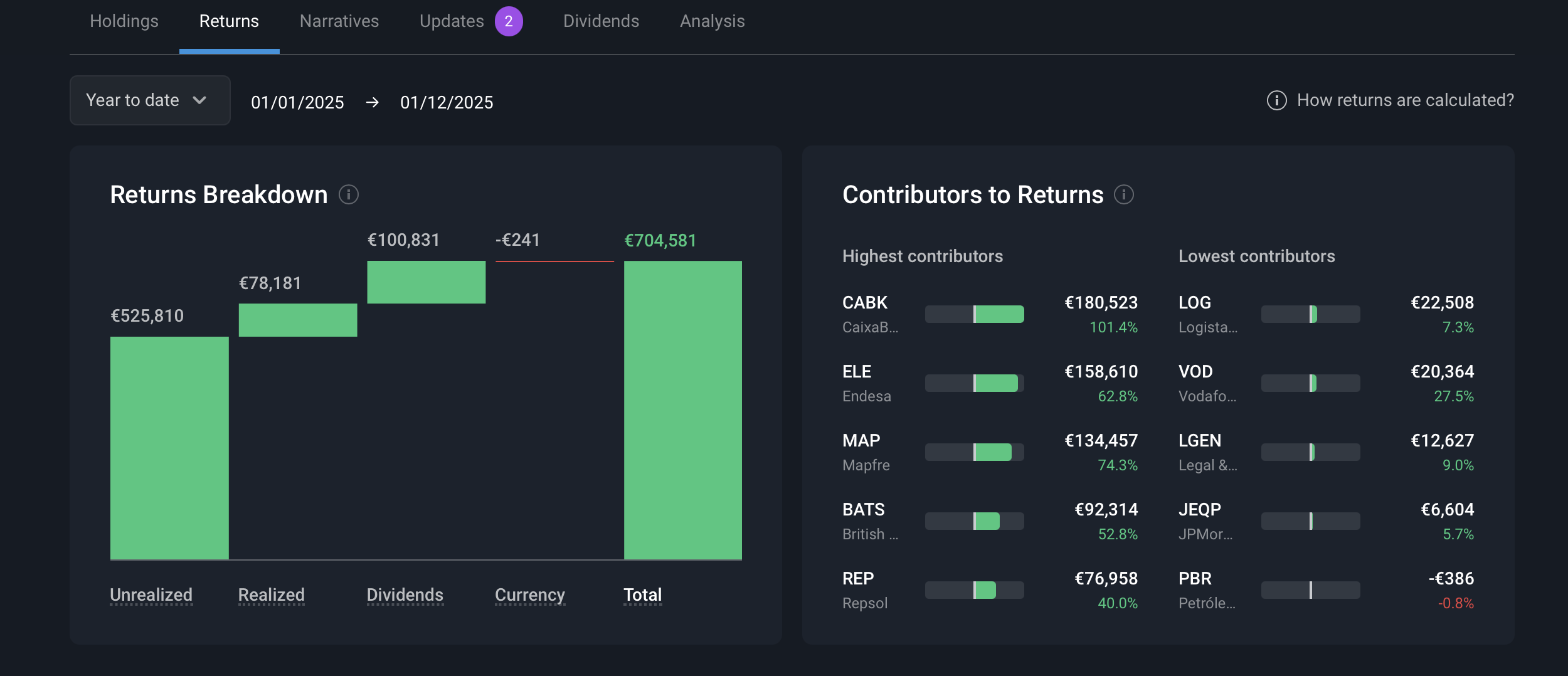 En fin y como resumen. Ni soñando podría haber esperado un año tan fantástico en mi cartera de acciones.