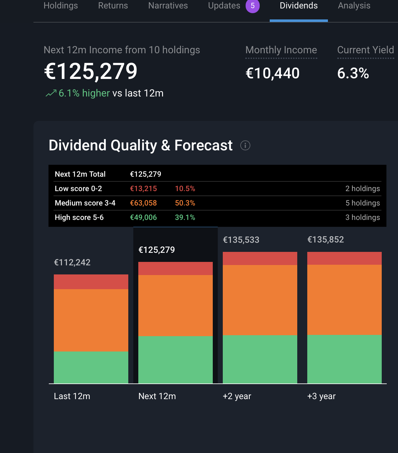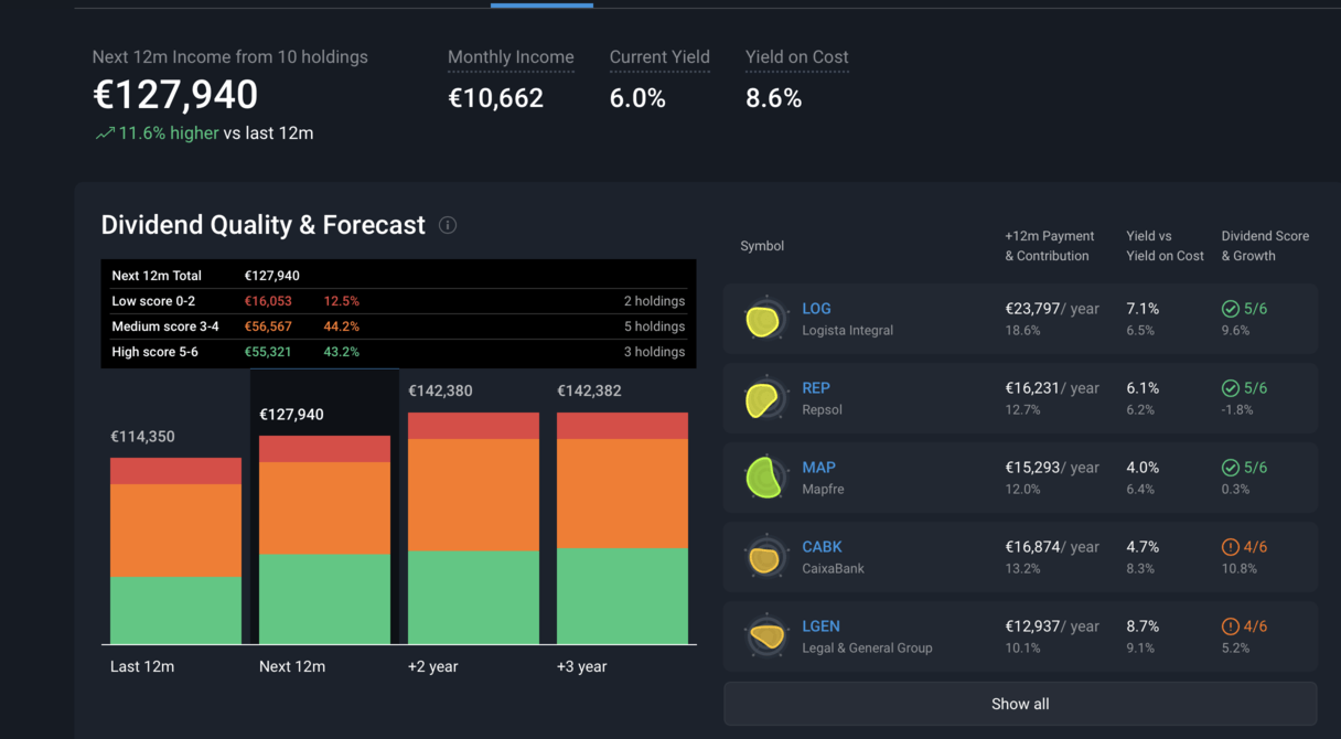 Con estas compras ya alcance el objetivo de 120k euros en Dividendos brutos esperados para el 2026 y voy a tratar de generar caja con los dividendos de los proximos meses para tener liquidez en un futuro a corto plazo para cuando la cosa se tuerza y asi tratar de llegar al siguiente objetivo en mi planificación.