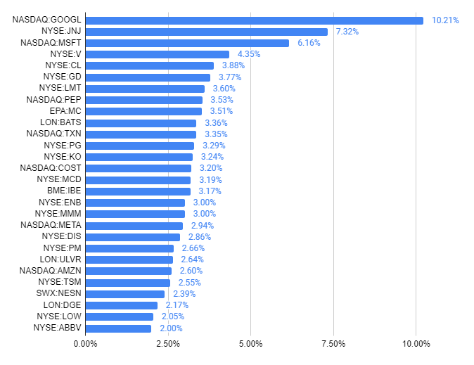 Lo que ha hecho que entre en mi Top 5 empresas con mas total return: Google, Microsoft, General Dynamics, Meta, Visa.