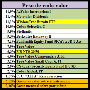 Baelo patrimonio un 14% creo a ver si tengo ganas y lo miro bien.