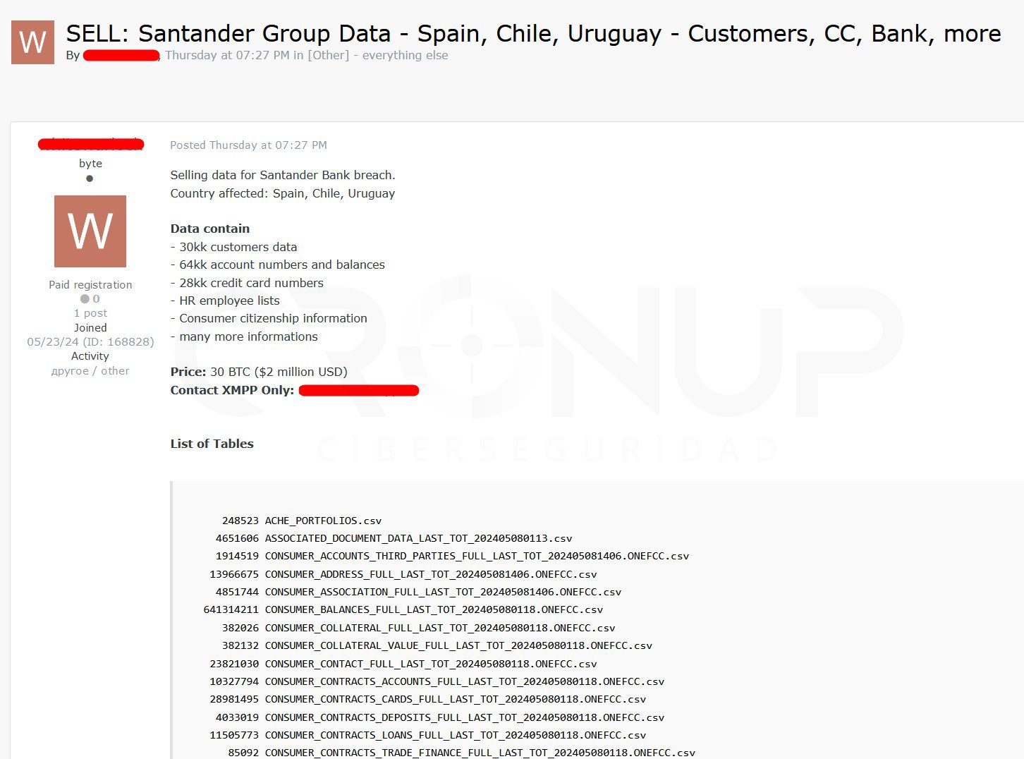 El que quiera conocer mi patrimonio en el Banco Santander solo tiene que pagar 30 BTC’s.