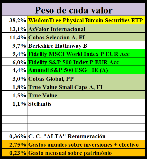 Con anterioridad, éramos la OCU y yo. Empecé a comparar mi cartera con la de la OCU cuando empecé a añadir Azvalor, Cobas y True Value, para ver si la mejoraba, luego sucumbí a la indexación y a BTC y lo único que me queda de los años de la OCU es Stellantis.