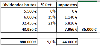 Con 880.000 €, vendes o como muchos me dicen te desinviertes (ahhhhh) un 4,1% te darían 36.080 €