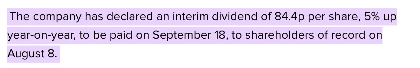 The Board has also today declared a dividend of 55 pence per share taking dividends declared so far in 2025/26 to £1.40 per share (2024/25: £1.00). This is in line with the Company’s dividend policy as set out in its Annual Report and Accounts. This will be paid on 3 October 2025 for shareholders on the register on 29 August 2025, with an ex-dividend date of 28 August 2025. The last date for elections for the dividend re-investment plan is 12 September 2025.