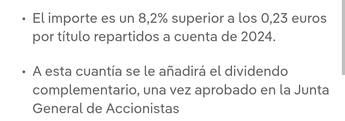 Si atendemos al dividendo total, contando el que repartió a final de año pasado, hemos pasado del 0,763€ a 0,8297, un incremento del +8,7%