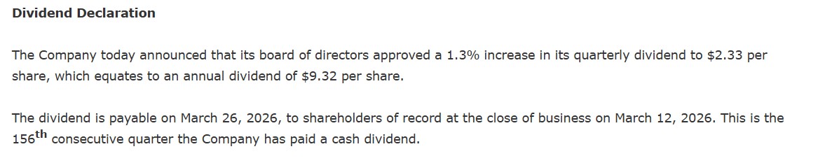 “As an interim dividend of €1.05 was paid in October 2025, the final dividend payment on 23 April 2026, if approved at the Shareholders’ General Meeting, will be €3.95 per share”