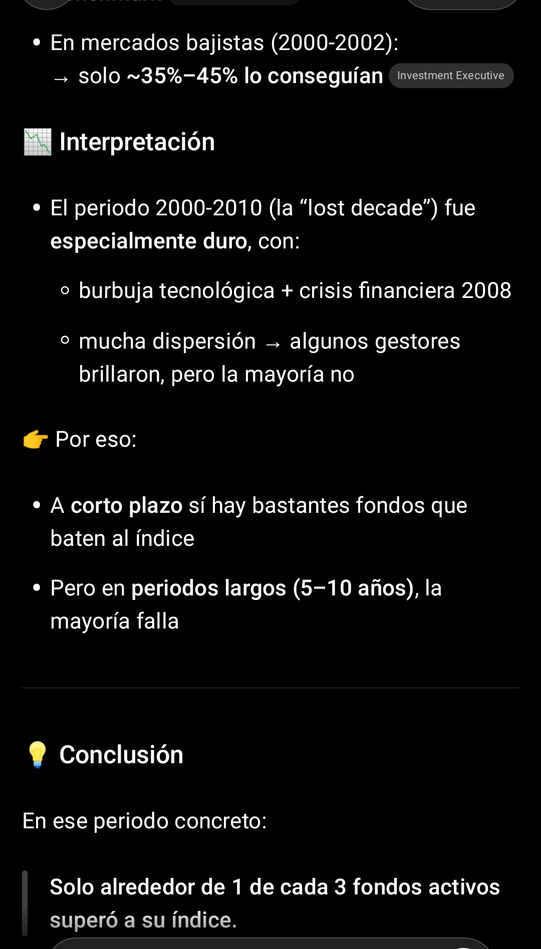 Resumen: en el periodo 2000-2010 también se quedaron la mayoría de fondos activos por debajo de su índice.