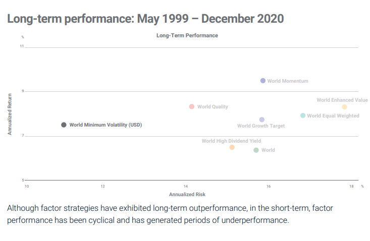 Según las tablas de @Bass todos esos factores ganan al world normal desde su inicio, pero solo el último gana a 3 años vista al normal. ¿No habremos inventado los factores a posteriori no? ¿Se podía invertir en ellos en el 95? ¿Algún factor se ha quedado por el camino?