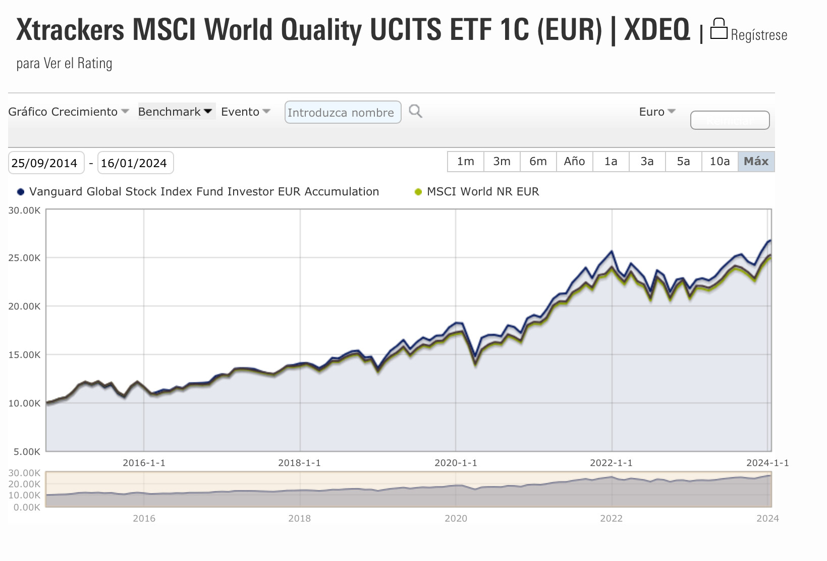 Yo no acabo de estar convencido. Entiendo el razonamiento que hay detrás de: “el MSCI World superará a la mayoría de fondos en el futuro”. Sin embargo, no acabo de tener claro lo de: “el MSCI World Quality superará al MSCI World en el futuro”. Ni con el Quality ni con ningún otro factor. Creo que el mercado es bastante eficiente.